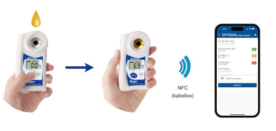 Das Schöne an der von GIMAT in Zusammenarbeit mit dem Softwarehersteller SD Nord konzipierten ganzheitlichen Lösung ist, dass diese modular aufgebaut ist. Kunden können frei wählen, für welchen Parameter sie händisch Werte eingeben möchten, für welche ein NFC-fähiges digitales Messgerät von ATAGO benutzt oder ob z.B. für den pH-Wert eine automatische Messung aus dem Hause GIMAT installiert werden sollen.